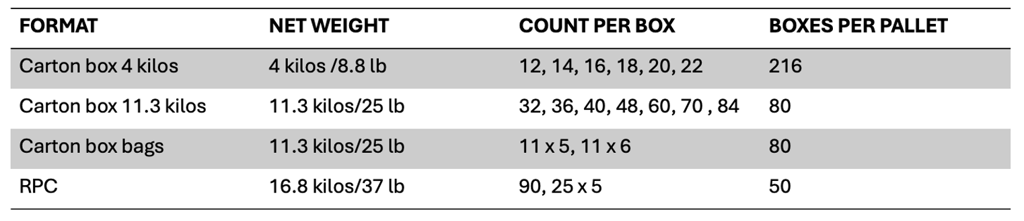 Maintained at 3.3 °C - 7°C (38°F - 45°F) throughout the supply chain to ensure optimal ripening upon arrival