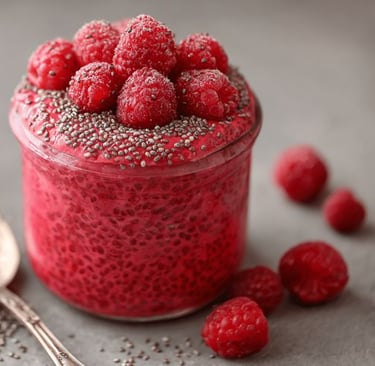 Top with raspberries and chia seeds